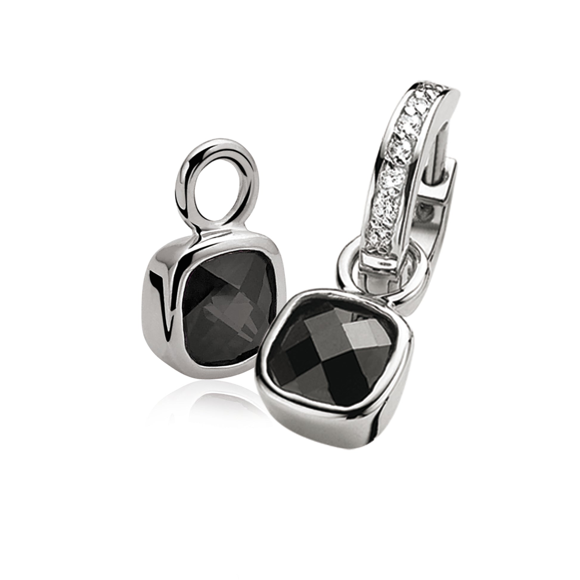 ZINZI zilveren vierkante oorbedels gezet met zwarte zirconia. Hang ze sierlijk aan je zilveren Zinzi oorringen . De oorringen zijn niet bij de prijs inbegrepen. Vervaardigd van eerste gehalte zilver (925) en met extra rodiumlaag voor een langdurige glans.